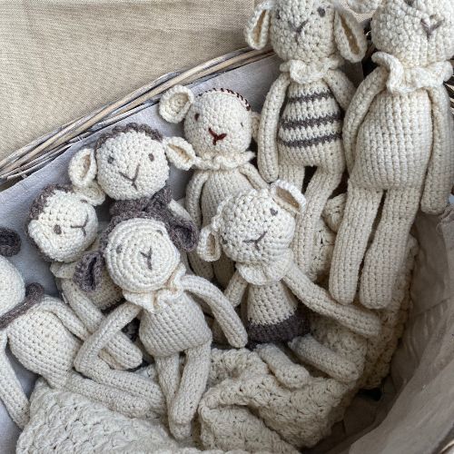 Le Mouton Doudou est un retour à l’essentiel. Crocheté à la main, en pure laine de brebis mérinos élevées dans le Sud de la France, non teintée, non traitée. Il est un concentré de douceur brute et de chaleur réconfortante. Avec leur bouille unique, chaque Mouton Doudou est une invitation à ralentir, à savourer l’instant et à offrir un compagnon à la fois tendre, naturel et unique.
